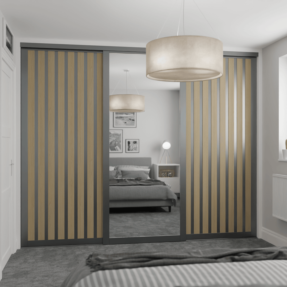 Shaker Graphite Grey & Light Oak Sliding Door Wardrobe Kit 3 Panel