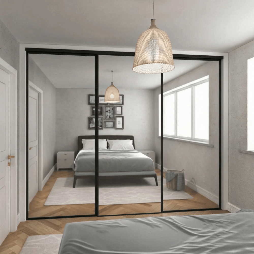 Our made-to-measure sliding systems require a clear depth of around 54 cm (or up to around 58 cm if internal drawers are planned) from the back wall to the front of the panels. You’ll want to make sure no radiators, doors or obstructions interfere within that space.