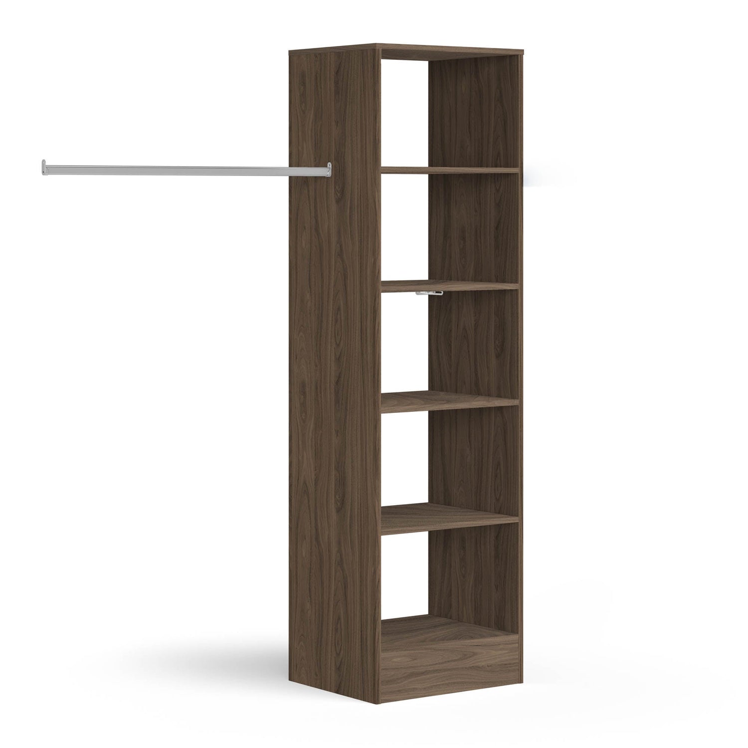 Carini Walnut Wardrobe Shelving Unit with 5 Shelves and Hanging Bars