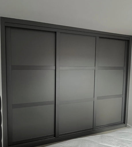 Graphite Shaker Kit de porte coulissante pour armoire - Miroir 4 portes - Fabriqué sur mesure
