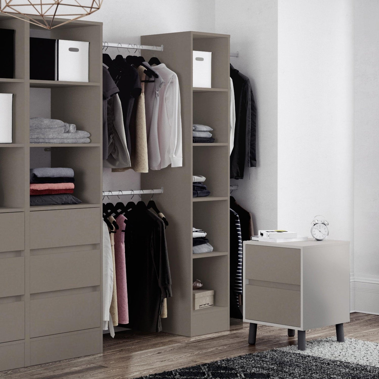 Stone Grey Wardrobe Shelving Unit with 5 Shelves and Hanging Bars
